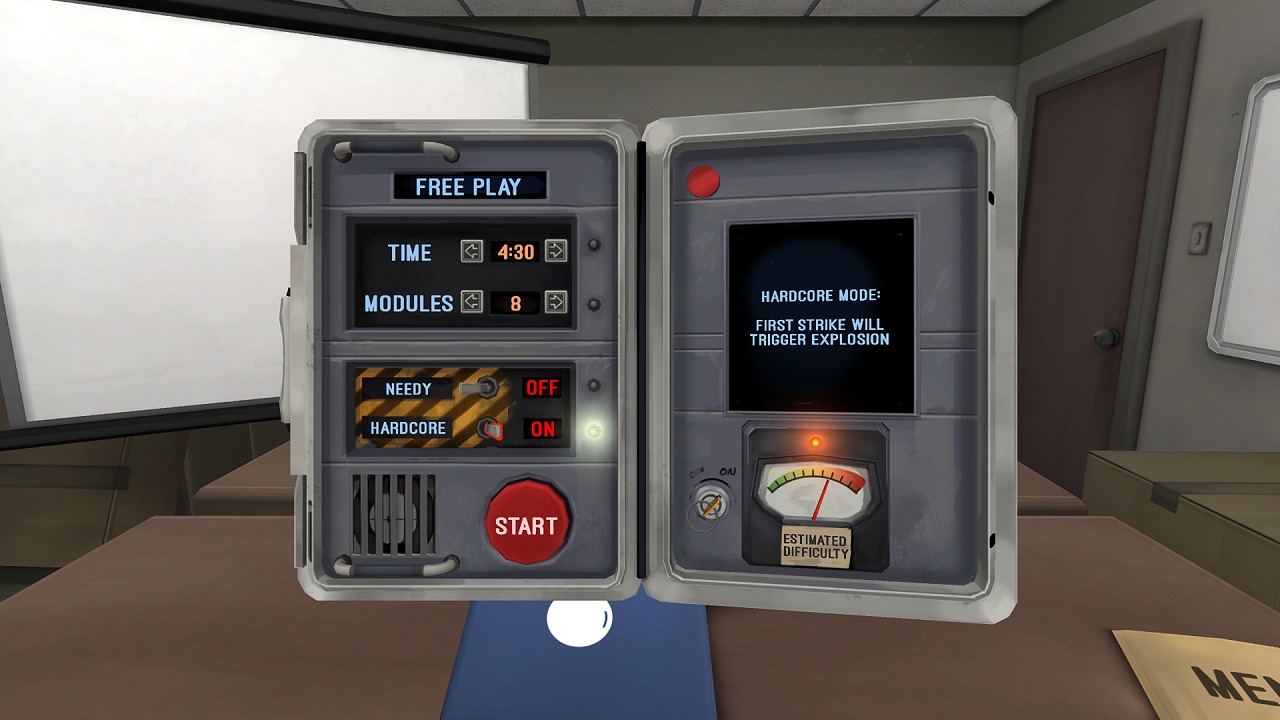 Перед началом каждого уровня вы увидите его параметры, тут вам покажут, сколько можно допустить ошибок, сколько задачек вам будет предоставлено и как много времени вам дают на решение задачи. Каждое новое задание представляет собой новую бомбу, даже если вы перепроходите уровень, она будет генерироваться случайным образом. Также на это не влияет уровень сложности, бомбы всегда разные. Обычно дается около пяти минут на выполнение задания, так что нужно действовать быстро. Вначале уровня, когда время уже пошло, сапер должен осмотреть бомбу, можно вращать ее, она выполнена в чистом 3D. Значение имеет все, не только сами головоломки, у нее может быть серийный номер, который также повлияет на выполнение задания, и многое другое.