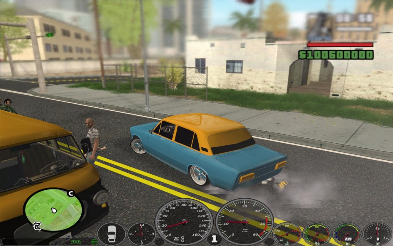 - Выберите себе крутую тачку. Выбор авто в игре огромный. Можно прикупить Ладу, можно погонять на восьмерке или девятке, а можно просто угнать патрульную машину.