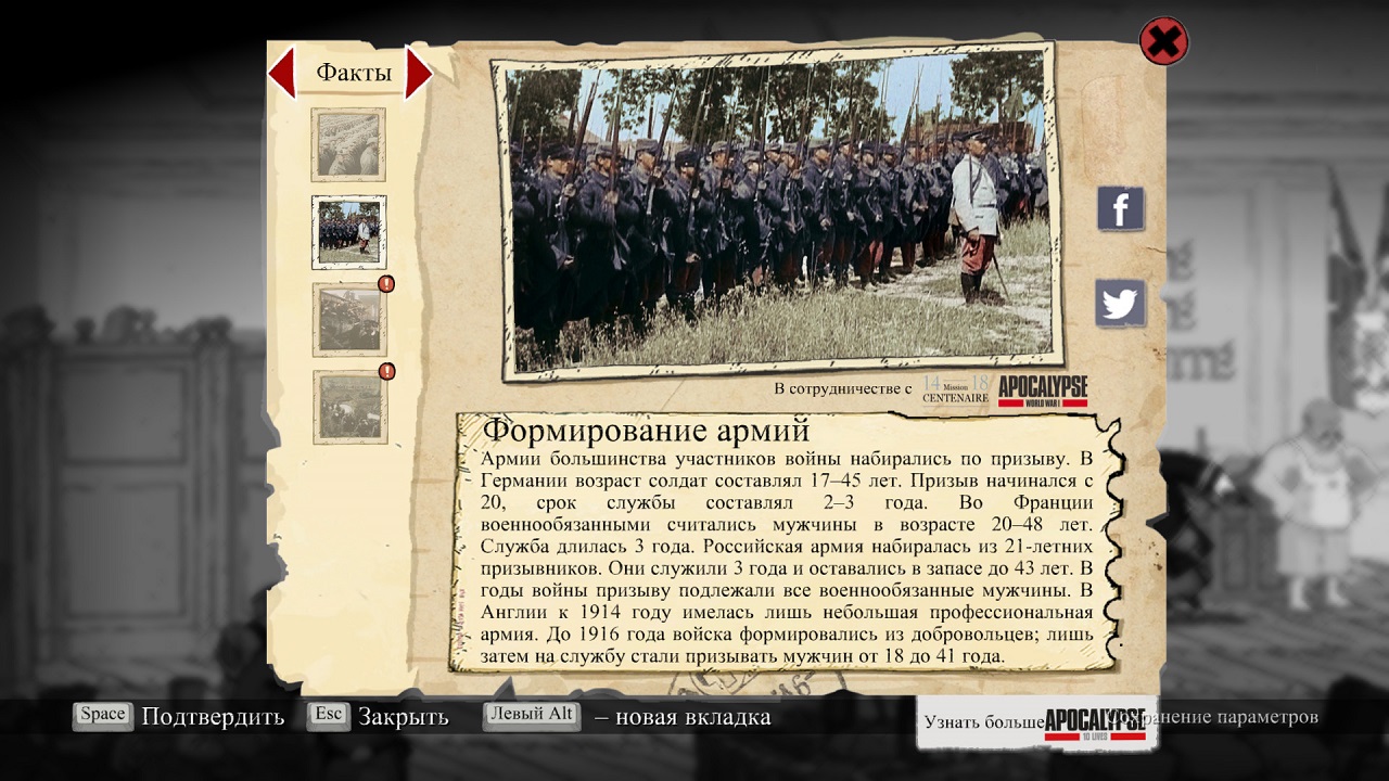 Как вы уже наверняка поняли, каждый пользователь ПК, благодаря этой игре, имеет уникальную возможность окунуться в эпоху чрезвычайно кровавого противостояние так называемых "вождей" своих наций, которые благодаря самым обычным солдатам, желали править всем миром. Для них солдатская жизнь не представляла ничего особого, они были готовы в любой момент пожертвовать огромным количеством своего войска для того, чтобы таким образом (некоторый период времени) править той или иной территорией, именно в такую атмосферу вы окунетесь, как только запустите данную игру. Как мы уже говорили, сюжет Valiant Hearts: The Great War, главным образом закручен вокруг пяти людей, которые воюя за свои странны, выполняют роль самых обыкновенных пешек, за жизни которых практически никто не переживает. Они родились в разных странах, но все они считают долгом помочь друг другу выбраться с общей беды, в которую попали благодаря чужому велению.
