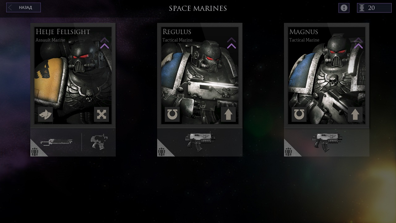Не следует также забывать о возможности контр-атаки, если приблизиться к противнику с оружием ближнего боя, он может напасть первым, перед ударом нападающего юнита. В игре многое зависит от удачи, но не все, есть шансы ответного удара, шанс промаха и многое другое, он зависит от многих факторов и сильно влияет на игру. В Warhammer 40,000 Deathwatch действует система прокачки юнитов. После каждой выполненной миссии бойцы получают опыт, он может быть потрачен на их прокачку. Если вашего юнита убили, то он теряет все накопленные очки опыта и не получает их на данный бой, так что старайтесь сохранять своих подопечных, распределяя урон по всем.