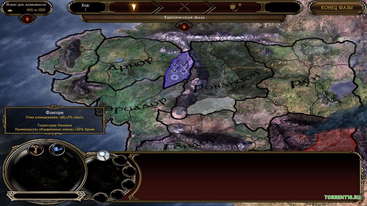 В новой части был добавлен режим War of the Ring, на которой вы будете управлять отрядами на карте Средиземья, захватывая нужные области. Каждая битва происходит на тактической карте, которая загружается после нападения. После боя в стратегическом интерфейсе вы можете нанимать войска, создавать экономические строения, чтобы пополнять запасы ресурсов. К сожалению ни о какой дипломатии речь не идет, все довольно стандартно для данного разработчика. Кампания в этой игре гораздо короче, чем в предыдущей части. Всего есть 8 заданий для каждой противоборствующей стороны – Тьмы и Света. Однако миссии гораздо насыщеннее, чем раньше, это очень большой плюс.