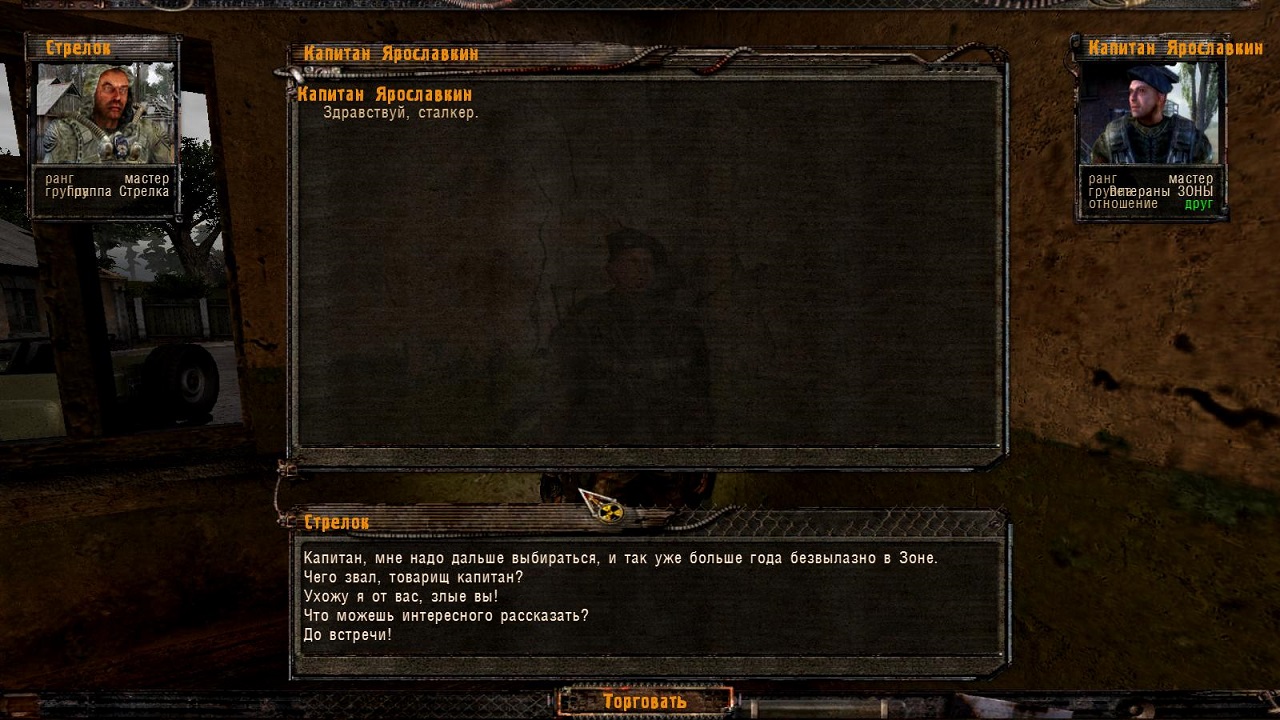 ВНИМАНИЕ !!! В начале игры сначала идём в вагончик, который слева, и говорим с челом - и только после этого можно общаться со всеми остальными, в противном случае можно ходить до бесконечности по Кордону и не найти ни одного квеста.