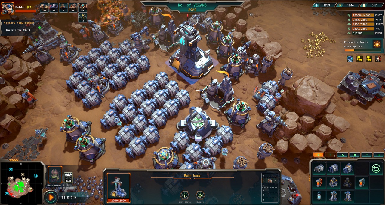 Когда вы начинаете новую игру, есть возможность выбора режимов. Выживание - это стандартный игровой режим, в котором игрок должен продержаться несколько дней, чтобы принять участие в атаках других игроков. Final battle отличается коротким, обтекаемым дизайном и гибридом Rogue-lite RTS. Главная проблема - это враги, местные, жестокие и кровожадные гигантские насекомые, которые нападают целыми стадами, роями. Вам нужно научиться защищать себя, изучать оборонные технологии, создавать защитные устройства, создавать подразделения, которые защищают вас, и не только. И даже при всем этом очень трудно защитить себя. Начните с одного героя, но откройте остальных позже. Страница выбора содержит информацию о каждом из них. Детали состоят из их качеств (бой, собирательство, лидерство, лидерство и технологии), навыков и специальностей, а также знания общих черт характера. Коммандер Лейтон - отличный герой универсального ранга для всех игроков, независимо от их уровня. В то время как Baldur лучше подходит опытным игрокам, которые хотят подобраться поближе и лично атаковать врагов в ближнем бою.