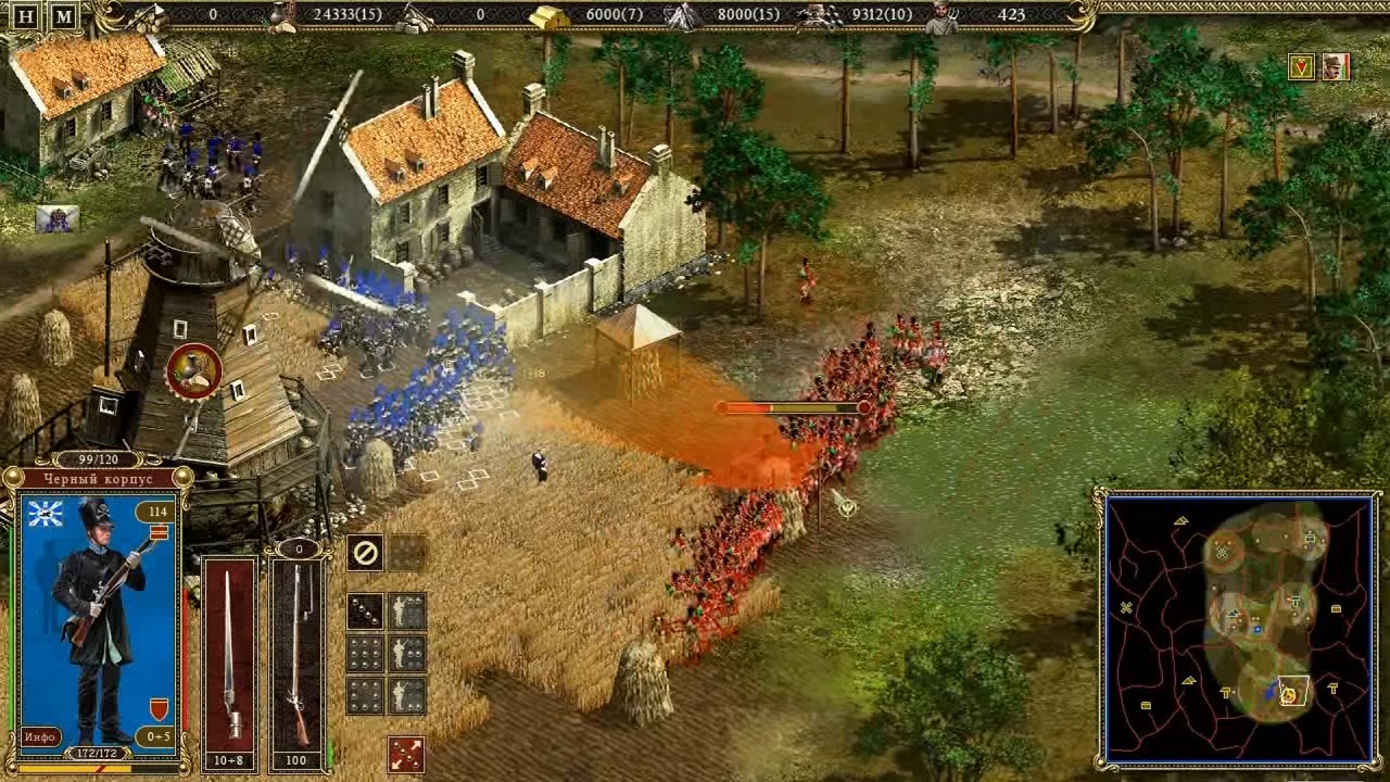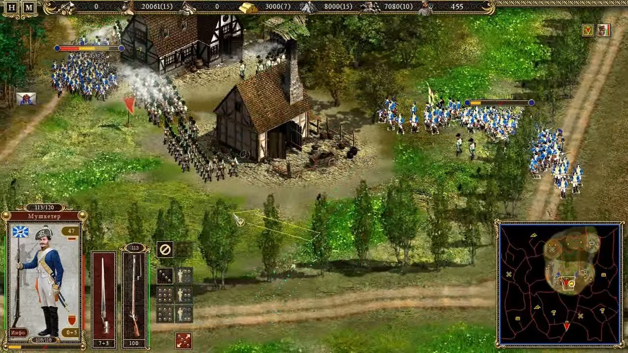 Первое, что бросается в глаза любому фанату серии – это то, что сражения происходят куда медленнее, чем лихие баталии первых Казаков. Обилие тактических приемов и режимов настройки отрядов просто поражает. Разобраться с этой игрой не так-то просто, ведь теперь победить может даже сторона, у которой гораздо меньше юнитов. Все это возможно как раз из-за системы сражения, которая позволяет нам управлять отрядами целиком, а не отдельными юнитами. Раньше тоже можно было объединять некоторые группы юнитов, они могли образовывать строй, менять формацию и тому подобное. Но во вторых Казаках вы больше не сможете, вести боевые действия не сгруппированными юнитами, одиночные бойцы без отряда тут же разбегутся при первом же залпе.